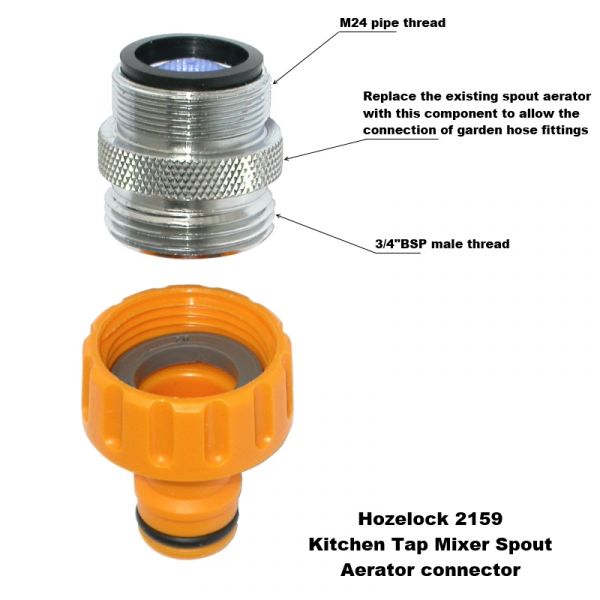 .garden hose to an indoor or garden tap, as well as how to attach it to spray nozzles, sprinklers mixer taps and the fourth type for mixer taps with an external male thread (used for an aerator).
